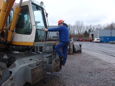 Auf dem Bergwerk Saar der Deutschen Steinkohle AG mit seinen ca. 4.500 Beschäftigten ist über und unter Tage ist ein hoher logistischer Aufwand für die Materialwirtschaft erforderlich. Allein auf der Anlage Nordschacht müssen täglich 180 Transporteinheiten mit unterschiedlichstem Material beladen und nach unter Tage transportiert werden. Fast ebenso viele Einheiten werden aus der Grube zurückgeführt. Bei den Mobilbaggern, die übertägig für solche Aufgaben eingesetzt sind, ist das Auf- und Absteigen durch die Anordnung und Gestaltung der Aufstiege ergonomisch ungünstig und gefährlich.