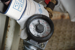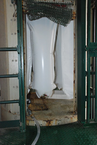 Der Schachtschlosser Borchardt ersetzte die Prüfgewichte durch Wasserbehältnisse aus doppelwandigen Planen, die einen Befüll- und einen Entleerungshahn haben. Sie werden leer auf dem Fördermittel eingehängt und über einen Wasserschlauch mit Durchflussmesser kontrolliert mit Wasser befüllt bis das Prüfgewicht erreicht ist.