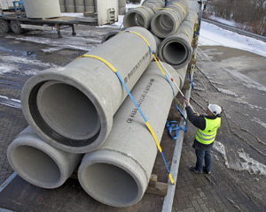 Für den Transport von Betonrohren werden hauptsächlich LKW eingesetzt. Für die zwingend notwendige Ladungssicherung werden Spanngurte verwendet, die in ausreichender Anzahl über die Betonrohre gelegt und fest mit der Ladefläche verbunden werden. Insbesondere beim Transport kommt es zwischen der rauen Oberfläche der Betonrohre und den Zurrgurten zu minimalen Relativbewegungen. Diese verursachen einen vorzeitigen Verschleiß der Gurte, der allerdings durch den Einsatz von Gurtschonern deutlich reduziert wird.