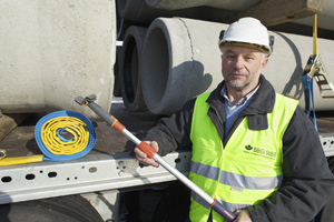Dazu müssen die Gurtschoner allerdings genau zwischen den Kontaktstellen positioniert werden. Das erfolgt in der Regel von Hand durch den Fahrer oder Verlader, der für diese Arbeit auf die Ladefläche oder sogar auf die Ladung steigen muss. Diese Tätigkeit ist mit einer sehr hohen Absturzgefährdung verbunden. Franz Xaver Kopp hat eine sichere Alternative entwickelt, die erstaunlich einfach, aber wirksam ist.
