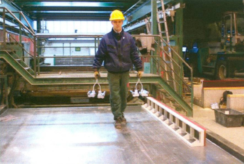 Bei der Herstellung großformatiger Betonfertigteile werden Schalungssysteme eingesetzt, die mit Hilfe von Haftmagneten auf Vibrationstischen befestigt werden. Diese Magnete sind bis zu 15 Kilogramm schwer. Beim Ansetzen wenige Zentimeter oberhalb der Grundplatte werden die Magnete durch die Magnetkräfte stark beschleunigt und setzen unkontrolliert auf. Zwischen Platte und Magnet besteht Klemmgefahr für Finger. Die Beton-Fertigteilbau Erfurt GmbH hat Magnete entwickelt, die bei geringerem Gewicht eine höhere Haftkraft als herkömmliche Magnete aufweisen.