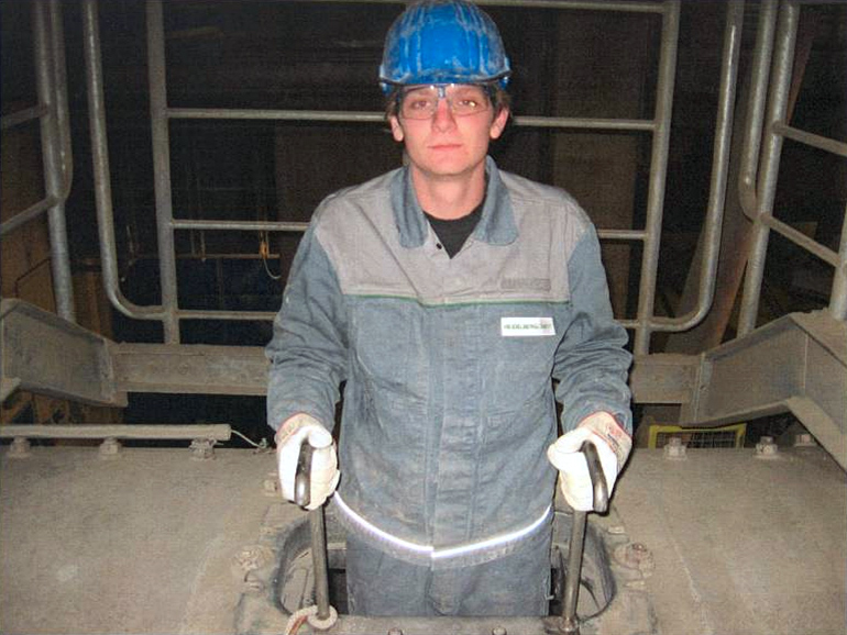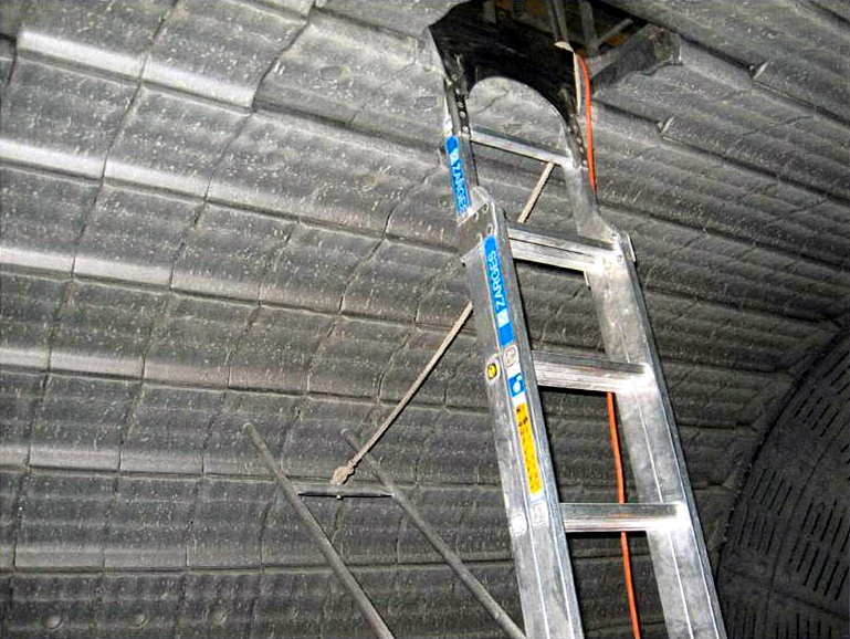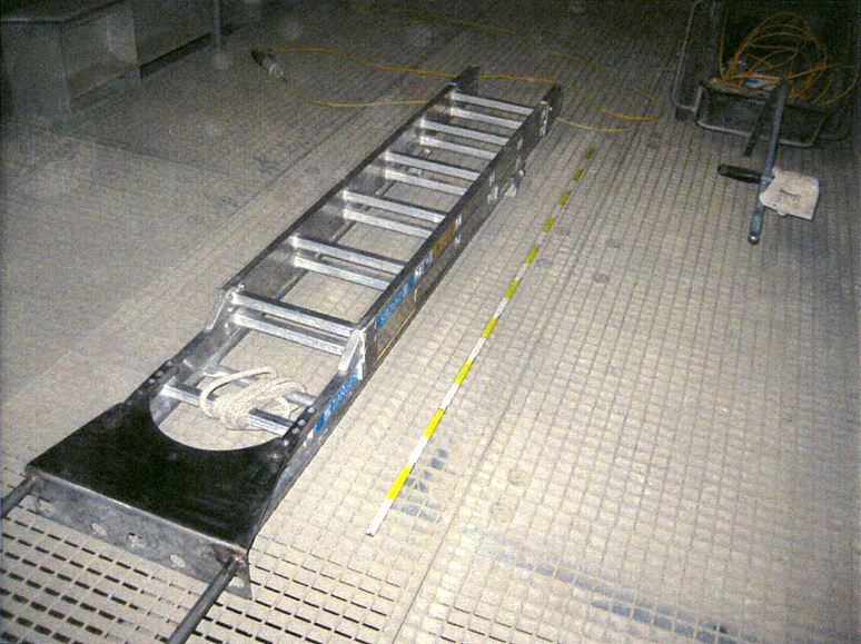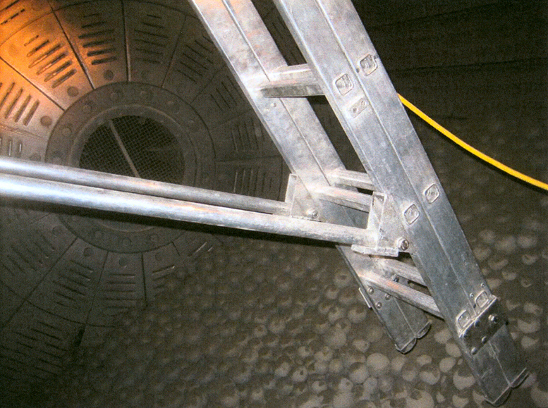 Kugelmühlen in der Zementindustrie müssen regelmäßig von innen inspiziert werden. Aus statischen Gründen sind die Öffnungen zum Begehen der Mühle sehr knapp bemessen. Für den Einstieg in die Kugelmühle werden Leitern benutzt, die zu einer weiteren Verengung des Einstiegsquerschnitts führen. Zudem können herkömmliche Leitern nicht kippsicher eingestellt werden, da sie mit den Füßen in der Mühle auf der Kugelfüllung stehen. Die Heidelberg Cement AG hat eine für diese Tätigkeit geeignete Leiter entwickelt.