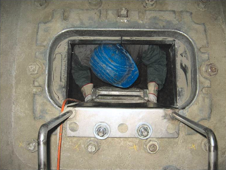 Außerdem kann die Leiter in der Höhe variabel an der Haltplatte verschraubt werden. Dadurch ist der Einsatz in allen Kugelmühlen üblicher Bauart und Größe möglich. Der von der Heidelberg Cement AG entworfene Prototyp einer sicheren und flexibel einsetzbaren Leiter wurde vom TÜV zertifiziert.