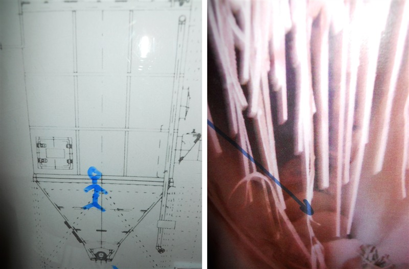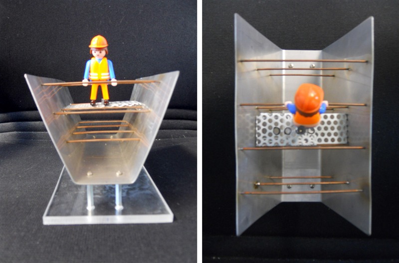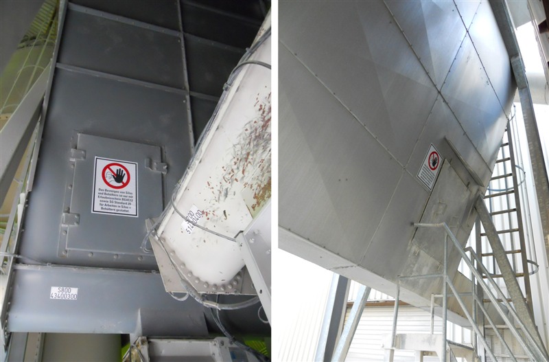 Bei den Filteranlagen handelt es sich um große viereckige Gehäuse, die nach unten hin konisch zulaufen. In diese Gehäuse werden von oben Filtertaschen eingehängt. Im unteren Bereich des Filters läuft eine Förderschnecke, die die Staubansammlungen aus dem Filtergehäuse hinaustransportiert. Im Wartungsbereich sind stabilisierende Metallstangen zwischen den Wandungen verspannt. Diese Spannstangen dienten den Mitarbeitern bisher als unsichere Stand- und Arbeitsfläche. Durch den engen Raum und die Förderschnecke besteht erhebliche Verletzungsgefahr.