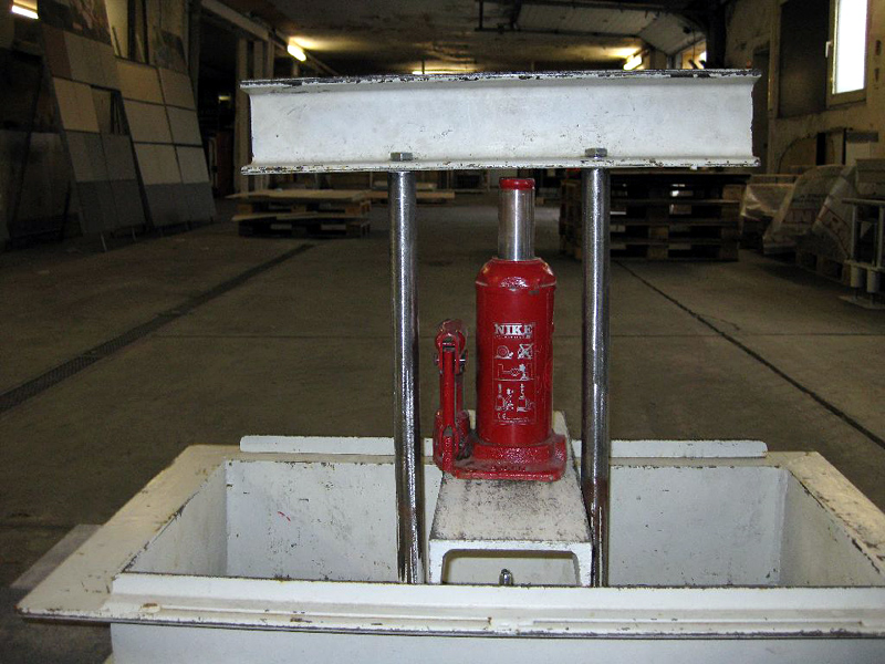 Bisher wurde die defekte Steinplatte angebohrt, mit einem Metallträger verschraubt und mittels einer weiteren Metallkonstruktion und eines Wagenhebers herausgelöst. Das Gewicht der dazu nötigen Ausrüstung beträgt 58 Kilogramm.