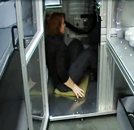 Um die Belastung der Mitarbeiter zu minimieren, wurde zunächst der Fußraum und damit die Sitzfläche in der Maschine erweitert. Außerdem wurde eine Verkleidung so versetzt, dass die Arbeiten nun sitzend mit gestreckten Beinen durchgeführt werden können. Ein Stuhl mit Rollen, der den Rücken stützt, ermöglicht das Hineinfahren in die Anlage.