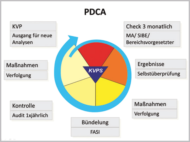 Durch die digitale Erfassung besteht jederzeit Überblick über das Ergebnis des Selbstchecks. Die Bewertung erfolgt in Dreierteams aus Mitarbeiter, Bereichsvorgesetztem und Sicherheitsbeauftragtem. Abweichungen vom Soll-Zustand und erkannte Mängel führen zu Maßnahmen, die in vorgeschriebenen Fristen abzuarbeiten sind.