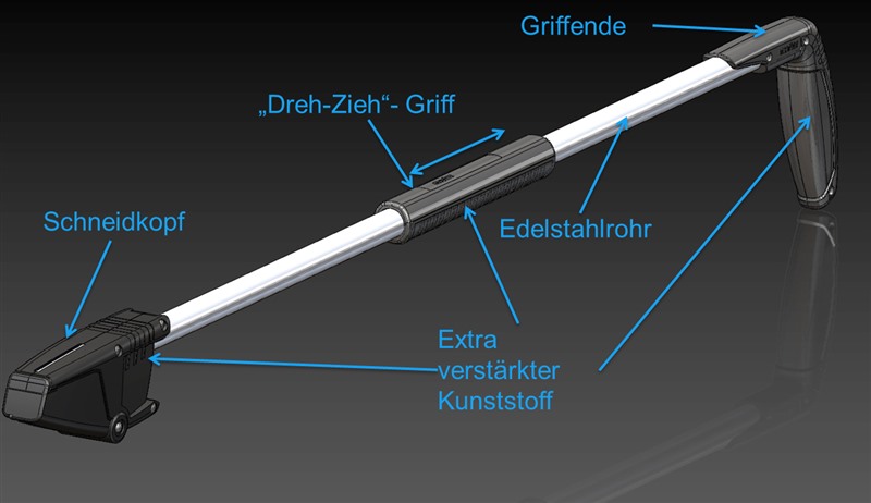 Sicherheitslevel: Automatischer Klingenrückzug; Gewicht: ca. 850 g; Länge: 100 cm; Klinge: rostfrei; Schnitttiefe: 24 mm; Klinge auswechselbar: Ja; Schmutzunempfindlichkeit: Ja; Benutzung: Für Rechts- und Linkshänder geeignet.