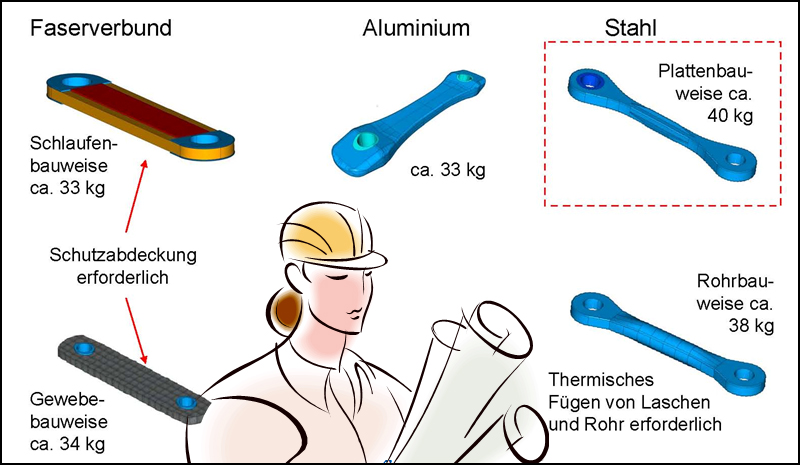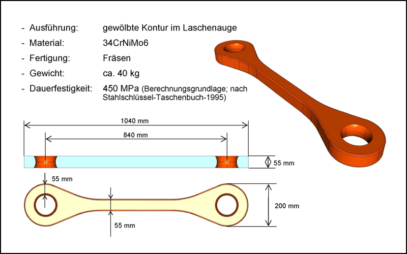 Die neue Kuppelstange sollte unter Verwendung modernster material- und werkstofftechnischer Erkenntnisse ein Eigengewicht von 40 Kilogramm nicht überschreiten. Der hohe Sicherheitsstandard im Bahnbetrieb sowie die Instandhaltung unter den bestehenden Beanspruchungen des Schwerlastgüterverkehrs mussten gewährleistet sein.