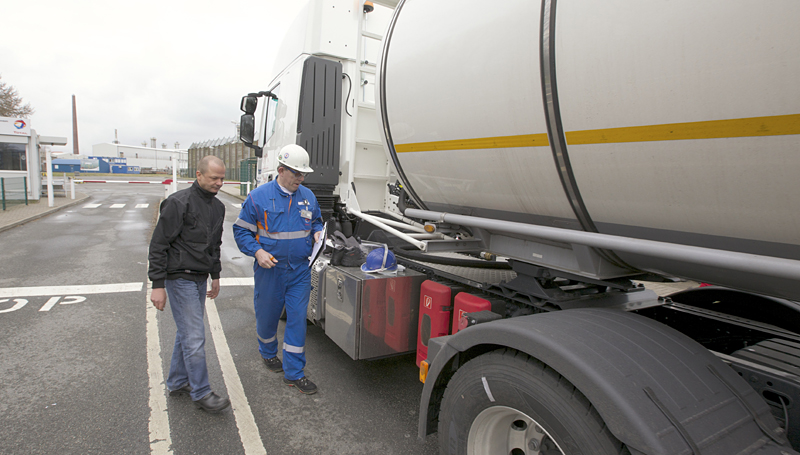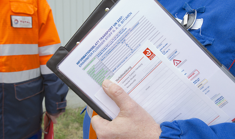 Die Total Bitumen Deutschland GmbH produziert am Standort Brunsbüttel verschiedene Bitumensorten für den Straßenbau. Die Verladung und der Transport erfolgen über externe Speditionsfirmen und deren Fahrer. Der Umgang mit dem ca. 200 °C heißen Material unterliegt den Gefahrgutbestimmungen. Von Brunsbüttel aus werden pro Jahr ca. 20.000 Tankkraftwagen-Transporte durchgeführt. Daher stellte sich die Frage, wie die sichere Beförderung bis zur Entladestelle beim Kunden nachhaltig verbessert und dauerhaft gewährleistet werden kann.