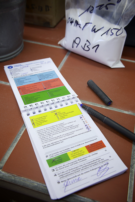 Carolin Schmidt und Dirk Meißner aus dem Unternehmen Alufin GmbH Tabularoxid in Teutschenthal haben zu diesem Problem eine überzeugende Antwort gefunden. Sie entwickelten das heute ganzheitliche System „TAKE 5 – Gefährdungsbezogene Checkliste“. Relevante Fragen wurden in einem Klappblock zusammengestellt, den jeder Beschäftigte im Unternehmen bei sich trägt. Vor der Aufnahme möglicherweise gefährlicher Tätigkeiten überprüfen die Beschäftigten, ob die Arbeitsaufgabe klar definiert ist, die erforderlichen Arbeitsmittel und Schutzmaßnahmen vor Ort sind und die Tätigkeit ohne Umweltbelastungen und in hoher Qualität durchgeführt werden kann. Mittlerweile liegen über 1.000 Rückmeldungen vor.