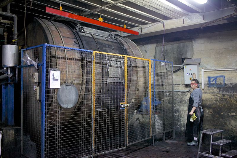 Die Fasssteuerung wurde dafür komplett erneuert und dabei so konzipiert, dass das Fass langsam anläuft und langsam gestoppt wird sowie exakt positioniert werden kann. Damit ist gewährleistet, dass sich das Fass beim Be- und Entladen immer in einer optimalen Position befindet und in ergonomisch günstiger Haltung gearbeitet werden kann.