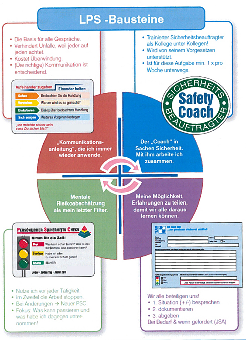 Beim zweiten Element des neuen Konzeptes werden bestimmte Mitarbeiter zu Safety Coaches ausgebildet. Diese Safety Coaches haben die Aufgabe, in ihren Gruppen das Thema Arbeitssicherheit in regelmäßigen Abständen zu thematisieren. Die Bandbreite reicht hier von Diskussionen zu Sicherheitsthemen über die Besprechung von kritischen Arbeitsabläufen bis hin zur kritischen Betrachtung von Gefährdungsanalysen. Die Safety Coaches sind in dieser Aufgabe authentisch, da es sich um Arbeitskollegen handelt. Die Regelmäßigkeit sorgt dafür, dass das Thema Arbeitssicherheit alltäglich ist und bleibt. Unterstützt und betreut werden sie dabei von Mentoren, die in der Regel auch die Linienvorgesetzten der Safety Coaches sind. Das Coaching wird mit den Vorgesetzten geplant und einmal pro Woche durchgeführt. Die Ergebnisse des Coachings werden auf der neu eingeführten Team-Karte eingetragen. Diese Team-Karten werden anonym von der Sicherheitsabteilung von EMPG ausgewertet und im Anschluss allen Mitarbeitern zur Kenntnis gegeben.