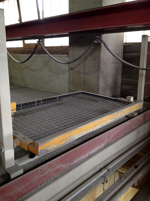 Die Rinn Beton- u. Naturstein GmbH & Co. KG, Heuchelheim, stellt Betonsteine her. Die Versorgung des Steinfertigers mit Beton wird über zwei Kübelbahnen gewährleistet, die jeweils einen bestimmten Beton transportieren. Die Kübelwagen fahren im Automatikbetrieb unter die Mischer und werden aus diesen mit Beton befüllt. In regelmäßigen Abständen müssen die Kübel gereinigt, gewartet oder repariert werden. Hier besteht Absturzgefahr.
