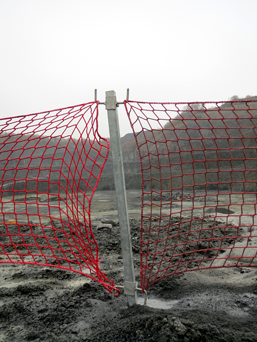 Da das Bohrgerät selbstständig von einem Bohrpunkt zum nächsten fährt, setzt man es zudem ein, um zwischen den eigentlichen Sprengbohrlöchern weitere, 0,5 Meter tiefe Löcher zu bohren. In diese Löcher werden Metallpfosten gesteckt und die Löcher mit Bohrklein verfüllt. Zwischen die Pfosten werden anschließend herkömmliche Baustellennetze gespannt.
