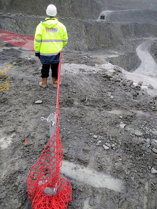 Bei der RPBL GmbH & Co. OHG, Sinzig, wird Naturstein durch Sprengungen gewonnen. Zur Vorbereitung und Durchführung einer Sprengung gehören verschiedene vorbereitende Tätigkeiten auf der zu sprengenden Sohle. Während der Vorbereitung befinden sich mindestens zwei Personen auf der Sohle. Die Sohlen haben freie Absturzkanten ohne Absturzsicherung, weil sich dort normalerweise keine Mitarbeiter aufhalten. Nach Berichten über tödliche Abstürze und einer Gefährdungsbeurteilung wurde Handlungsbedarf festgestellt.
