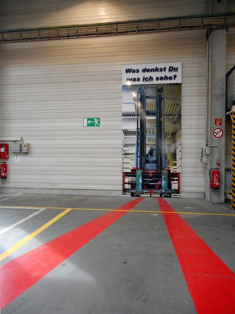 Diesen Zwischenfall nahmen die Mitarbeiter im Werk Brieselang zum Anlass, den innerbetrieblichen Verkehr genauer zu betrachten. Es stellte sich heraus, dass die meisten Beschäftigten die Sichtverhältnisse aus einem Stapler heraus nicht kannten bzw. falsch einschätzten. Allen Mitarbeitern wurde daraufhin die Gelegenheit gegeben, die eingeschränkten Sichtverhältnisse eines Gabelstaplerfahrers persönlich kennenzulernen. Für eine nachhaltige Wirkung dieser Schulungen hat man die Sichtverhältnisse aus einem Stapler heraus und insbesondere die toten Winkel als maßstabsgetreues Foto auf Wände und Böden der Lagerhallen übertragen. Diese Abbildungen dienen auch dazu, die Fahrer der Speditionen, die regelmäßig den Betrieb anfahren, auf diese besondere Problematik hinzuweisen.