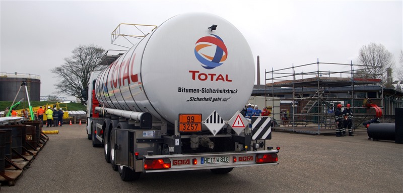 Das Unternehmen TOTAL Bitumen Deutschland GmbH produziert im Werk Brunsbüttel verschiedenste Bitumenprodukte. Das zu Destillationsbitumen verarbeitete Rohöl geht in den Straßenbau, wird zu polymermodifiziertem Bitumen veredelt oder zur Produktion von Oxidationsbitumen für industrielle Anwendungen genutzt. Der Transport der Produkte erfolgt hauptsächlich über Tankfahrzeuge auf der Straße. Während der Be- und Endladevorgänge der meist heißflüssigen Massen und der langen Transportstrecken kommt es immer wieder zu Störungen mit Verletzungspotenzial für die Beschäftigten oder zu Verkehrsunfällen.