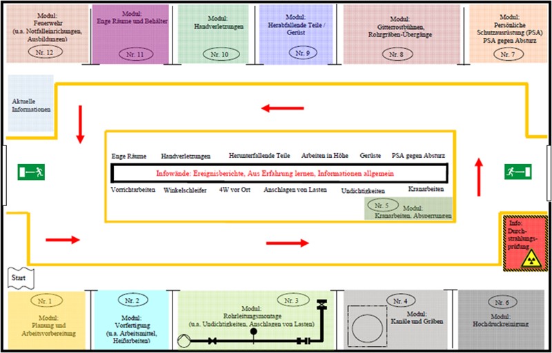 Das eigene Verhalten in Bezug auf Arbeitssicherheit, die Entwicklung von Lösungsansätzen an praktischen Beispielen sowie das Training von standortspezifischen Methoden und Verhaltensregeln stehen dabei im Mittelpunkt. Intensiv wird über einen moderierten, interaktiven Sicherheitsdialog auch der Gedanken- und Erfahrungsaustausch gesucht und die Teilnehmerinnen und Teilnehmer kommen untereinander über Arbeits- und Gesundheitsschutz ins Gespräch. Ein weiteres wichtiges Ziel ist es, jede Mitarbeiterin und jeden Mitarbeiter zum konsequenten, respektvollen Eingreifen in unsicheren Situationen zu ermutigen.
