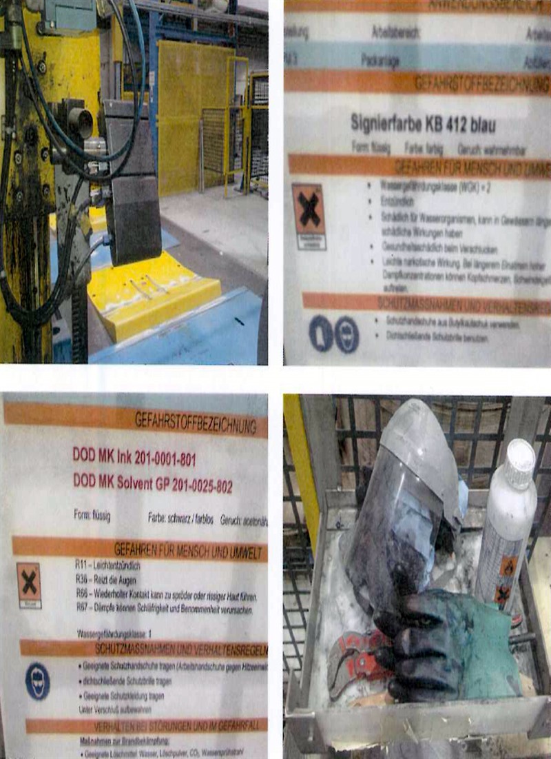 In der Papierfabrik Palm GmbH (Eltmann) erfolgte die Signierung der Papierrollen mittels Auftrag von lösemittelhaltiger Farbe. Als Lösungsmittel war 2-Butanon enthalten. Um ein einwandfreies Druckbild zu gewährleisten, musste der Druckkopf häufig von den Mitarbeiterinnen und Mitarbeitern manuell gereinigt werden. Bei diesem Vorgang kam es zu merklicher Belastung der Atemluft durch Lösungsmitteldämpfe.
