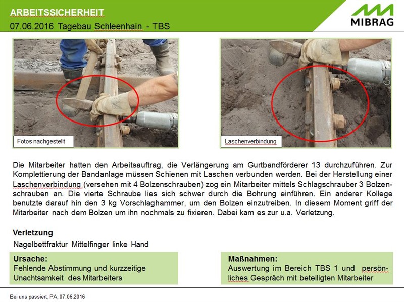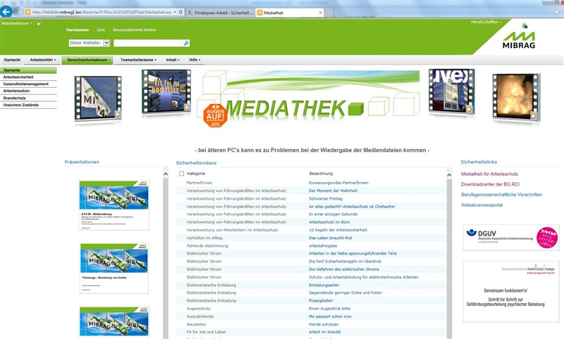 Mit dem Start des Sicherheitsprogrammes 2020 „Augen auf! Sicher arbeiten“ hat die MIBRAG mbH den Fokus im Arbeits- und Gesundheitsschutz auf das Verhalten der Mitarbeiterinnen und Mitarbeiter gerichtet. Mit dem Aufbau einer Intranet-Plattform sollen die Mitarbeiter rund um das Thema Arbeits-und Gesundheitsschutz informiert und den Führungskräften Werkzeuge für ihre Präventionsarbeit zur Verfügung gestellt werden. Die Sharepoint-basierte Plattform spiegelt dabei die Strukturen des Bereiches Arbeits-, Gesundheits- und Brandschutz wider und stellt Informationen in Webparts zur Verfügung.