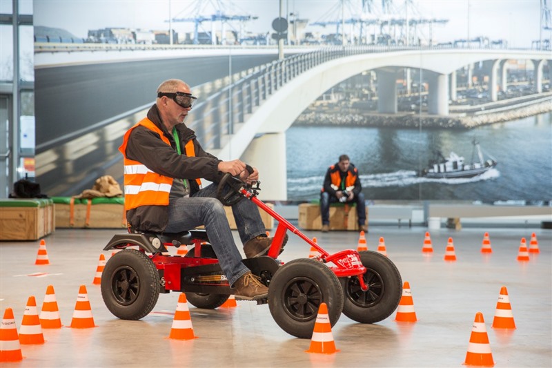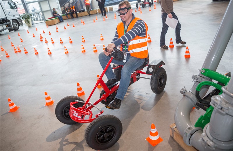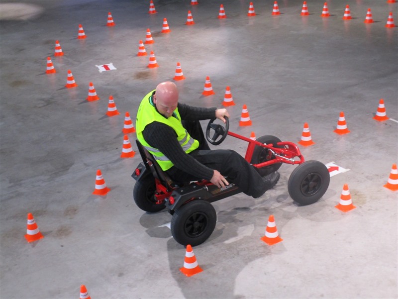 Aus diesen Überlegungen heraus wurde beim Fahrpersonal-Training 2016 der HeidelbergCement AG in Wörth ein Parcours abgesteckt, den die Teilnehmerinnen und Teilnehmer mit sogenannten „Dino-Cars“ zu bewältigen hatten. Diese Fahrzeuge sind geeignet für Personen bis zu einer Körpergröße von 2 m und einem Gewicht von 130 kg.