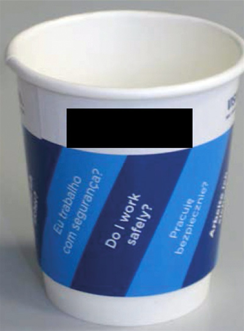 Kaffeemaschinen stellen im Werk immer zentrale Anlaufstellen dar, an denen sicherheitsrelevante Signale gesendet werden können. Daher werden diese Kaffeemaschinen seit einiger Zeit mit neuen Bechern bestückt, auf die die Frage „Arbeite ich sicher?“ aufgedruckt ist. Da diese Becher täglich von eigenen und Fremdmitarbeitern genutzt werden, sind die Fragen außerdem in verschiedenen Sprachen verfasst (englisch, italienisch, portugiesisch, polnisch).