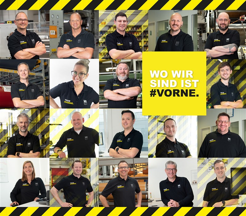 Team #VORNE-Mitglieder erkennt man an ihrem Shirt: Im jährlichen Abend-Event werden sie feierlich ins Team aufgenommen. Die Geschäftsleitung überreicht Urkunde und Shirt und ehrt jedes Mitglied und dessen besondere Leistung. Das Event soll im Werk Begehrlichkeit wecken: Alle sollen den Wunsch haben, Teammitglied zu werden. Dadurch schaffen wir einen Domino-Effekt und vergrößern unser Team aus Botschafterinnen und Botschaftern.