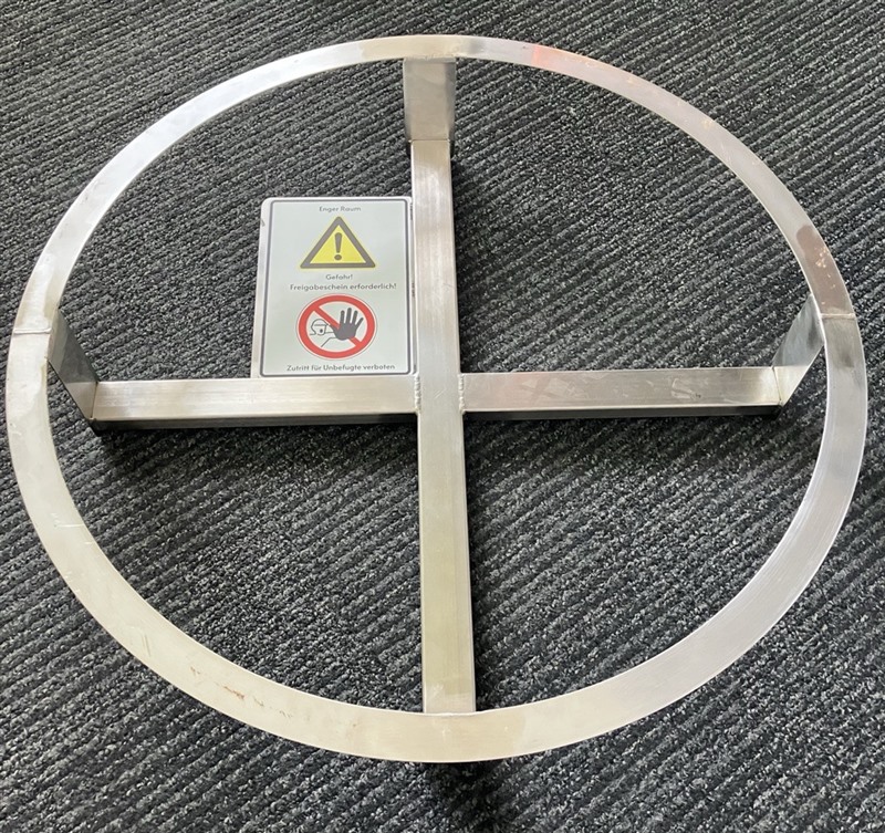 Auf dem Betriebsgelände gibt es zahlreiche Schächte, bei denen die Gefahren durch enge Räume und Absturzgefahr bestehen. Eine Kennzeichnung der Deckel von oben hat bisher keine dauerhafte Lösung geboten, da diese schnell abgetragen wurde bzw. verblasste.