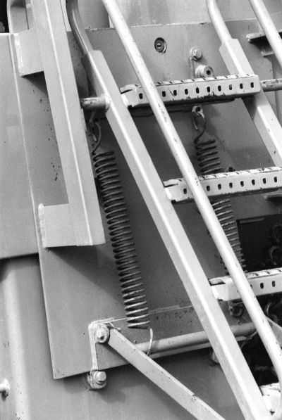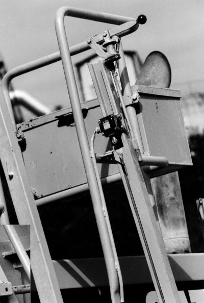 Die von den Radladerherstellern serienmäßig angebotenen Aufstiegsleitern zu den Geräten verfügen in der Regel über eine beweglich angebrachte untere Stufe in einer Mindesthöhe von 0,65 m. Eine während der Fahrt senkrecht angebrachte Treppe wird zum Auf- bzw. Absteigen aus ihrer Arretierung gelöst. Hierbei entsteht einTreppenaufgang von ca. 75° Neigung mit rutschfesten Stufen, beidseitigem Handlauf und einer Mindesthöhe der unteren Stufe von 0,3 m über Erdniveau. Über einen Grenztaster ist sichergestellt, dass der Radlader nur in arretiertem Zustand der Treppe gestartet werden kann. Seit dem Einbau dieser Sicherheitseinrichtung ereignete sich kein Unfall im Zusammenhang mit dem Auf- und Absteigen und gleichzeitig wurde die Zufriedenheit der Mitarbeiter erhöht.