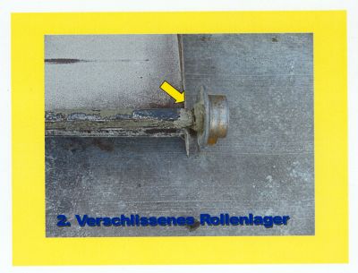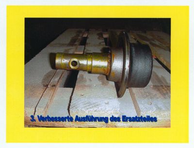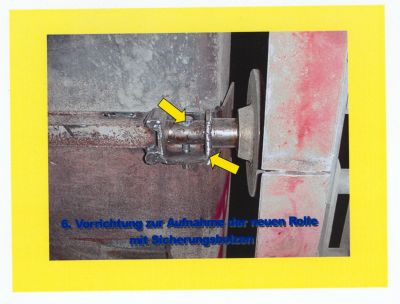 Ein Unternehmen der Zementindustrie entwickelte eine Möglichkeit, den Lagerwechsel für die Stützrollen kostengünstiger und sicherer durchzuführen. Für die Lagerung der Rollen wurde ein kurzes Achsstück entwickelt. An den Vierkantprofilen wurden jeweils U-Profile angebracht, die mit Bohrungen versehen den Wellenstumpf der Rolle aufnehmen.
